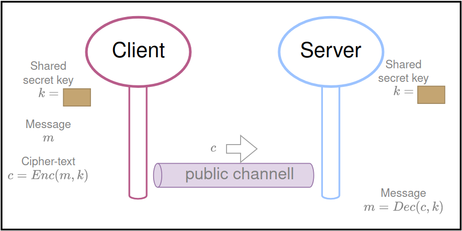 Two parties (e.g., a Client and a Server) that know a shared secret can build a private communication channel thanks to symmetric cryptography.