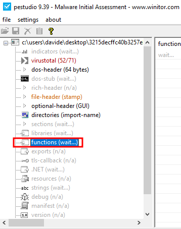 Pestudio is not able to recover any function imported by the sample, a sign that it is in fact packed.
