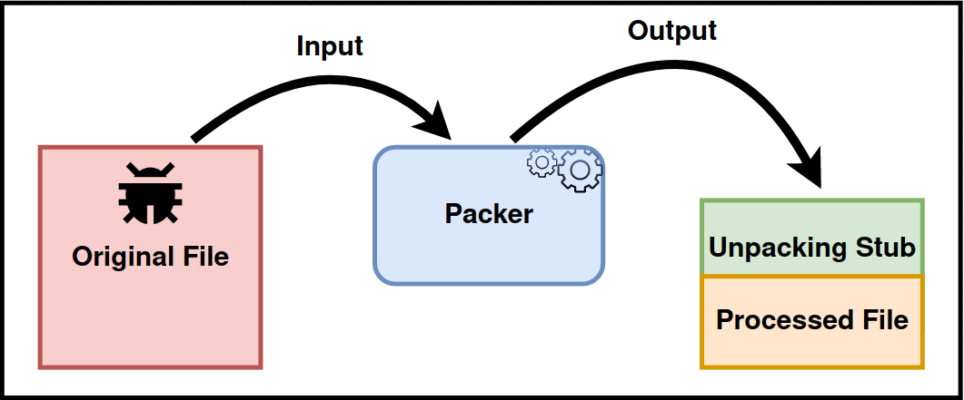 When started, a packed file would execute the unpacking stub that performs operations such as allocating new space, decrypting and copying further instructions, running those instructions, and so on, until the data composes the original file and can finally be executed.