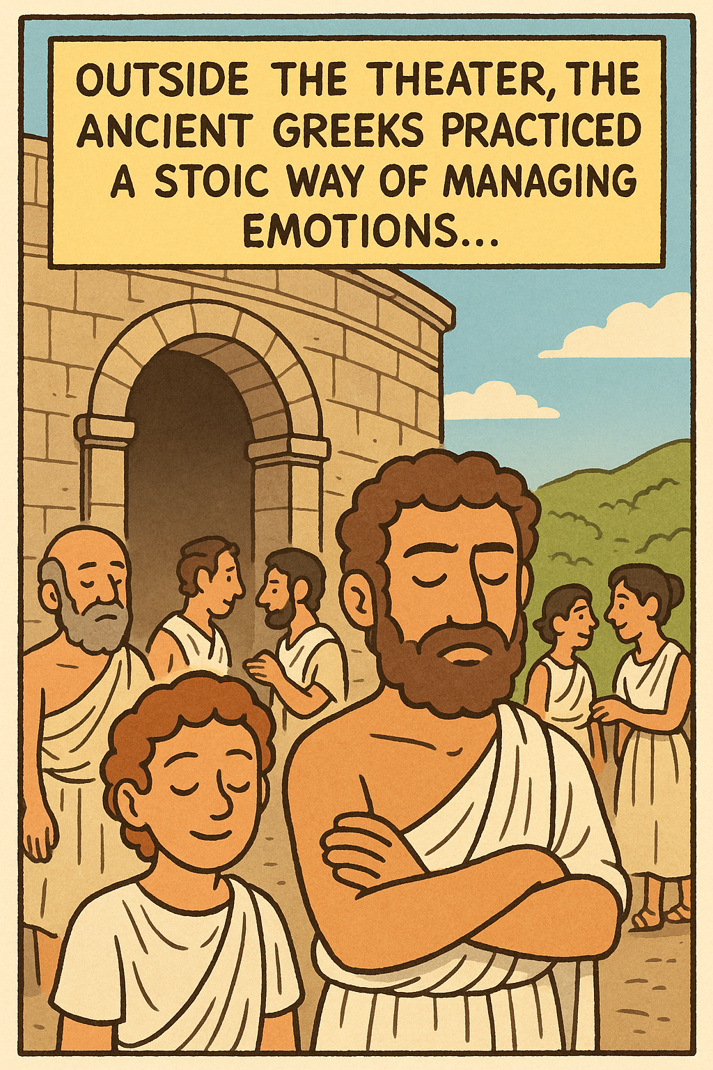 Outside the theatres, ancient Greeks keep a stoic way of managing emotions.
